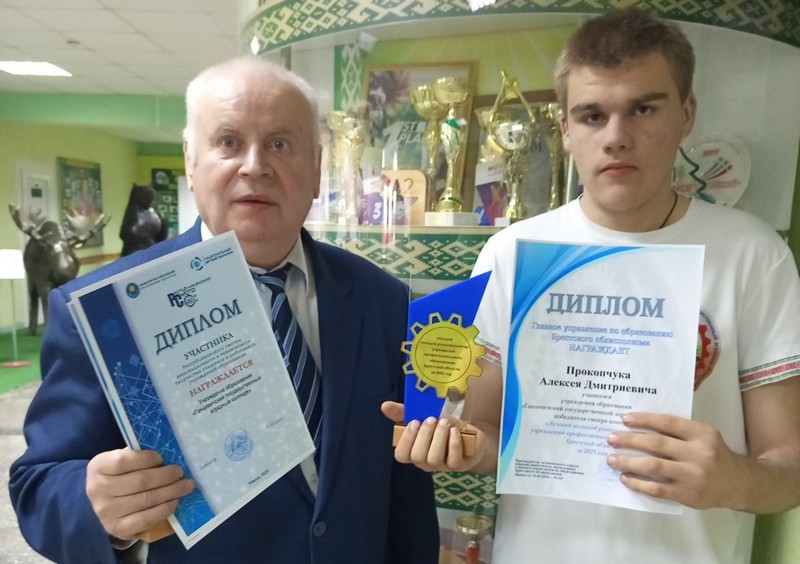 По итогам областного смотра-конкурса учащиеся колледжа Гончарук Игорь и Прокопчук Алексей были награждены в номинации "Лучший молодой рационализатор учреждений профессионального образования за 2025 год".
