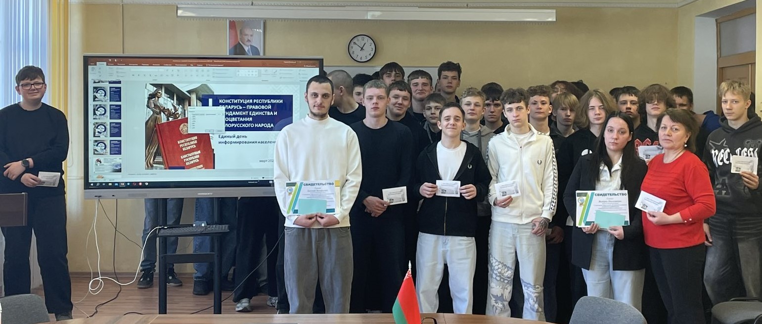 16.03.2026В колледже состоялся Час правовых знаний "Конституция - закон, по которому мы живем", целью которого было повысить правовую культуру учащихся, донести важность знания основ государственного устройства и прав граждан, способствовать формированию у молодёжи уважительного отношения к закону и понимания своей роли в построении правового государства.
